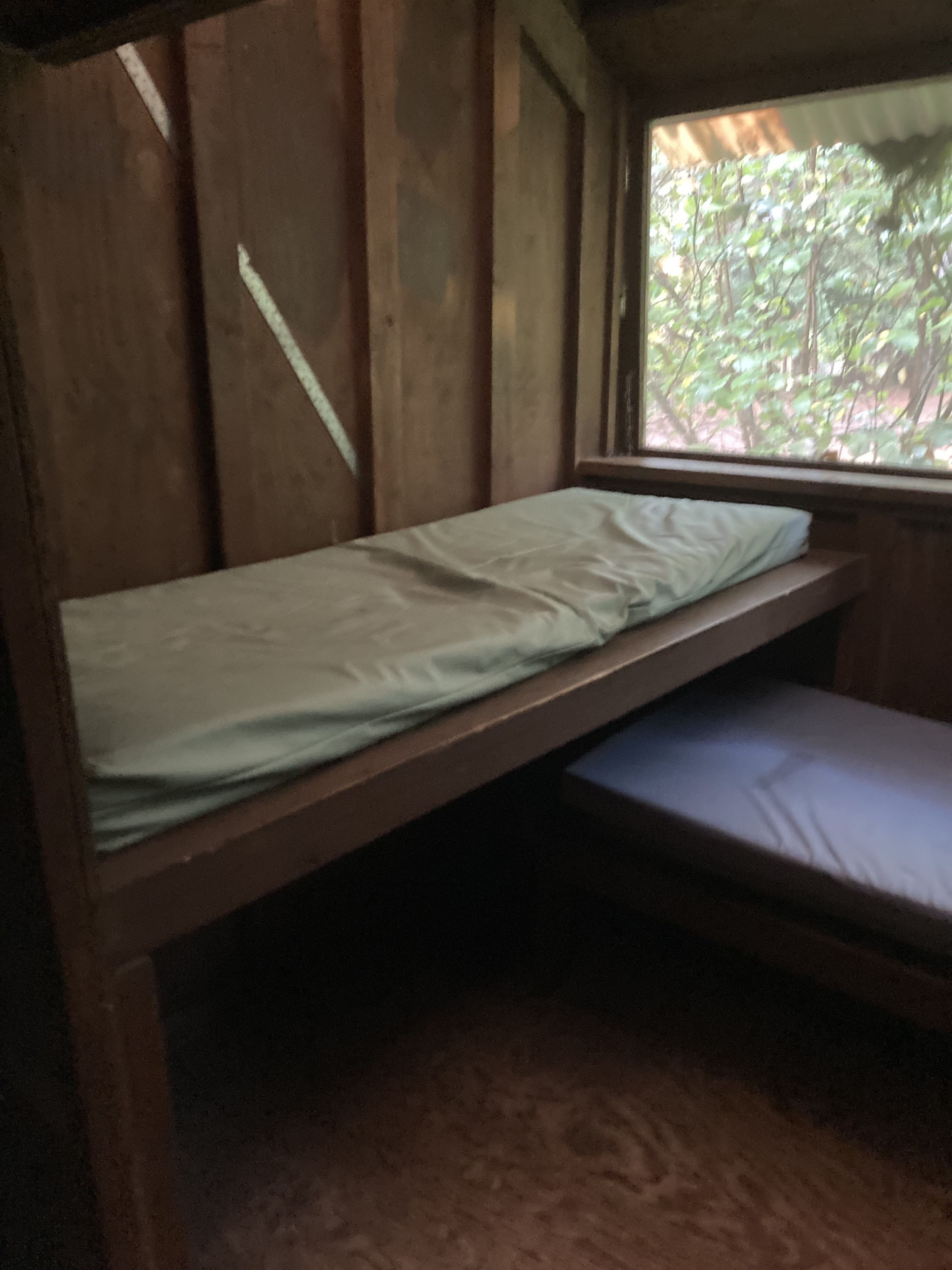 - There are five cabins that each have about 10 open dorm-style bunks (with foam mattresses) available for camping out. The cabins do not have heat or electricity in them.
